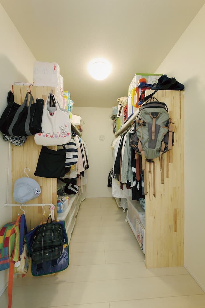 HOME | 施工事例 | case023 建物価格:1,490万円延べ床面積:109㎡ 間取り:4LDS+S クリックすると大きくして見る事が出来ます。 Design point デザインポイント 大容量のウォークインクローク 子供達の服やパパママの服を収納しても、まだまだ余裕のあるクローゼットを完備しました。将来的に棚の位置を移動したり大きな家事室にしたりとリフォームも簡単になっています。 勾配天井により開放的な空間を実現 リビング空間は勾配天井により㎡数以上の開放感を感じる事が可能です。家族が集まる空間だからこそゆったりとした空間で設計しています。 前の実例 次の実例 実例TOP イベント