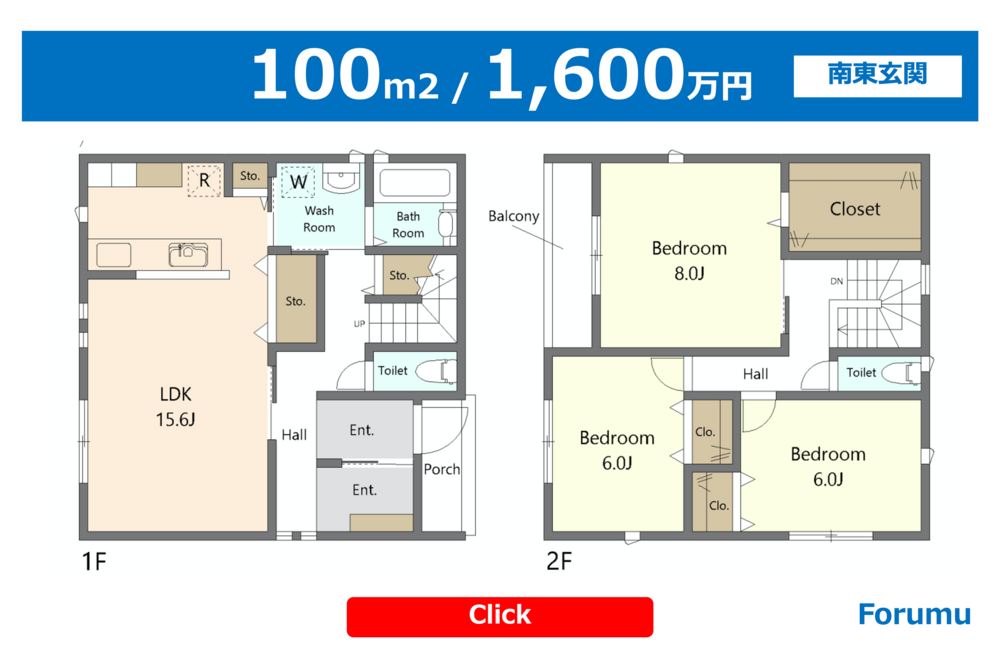HOME | 間取り集 | madori-32 |Room Plan 32 間取り 32 2階建 / 一般住宅 / 25-30坪 / 南東玄関 / 1階リビング 100m2 / 3LDK 1,600万円 大きな玄関収納 / 玄関収納が回遊動線 / 対面キッチン / 床暖房 / 全室エアコン / 全室収納 / 大きなウォークインクローク 前の間取り 次の間取り 間取りTOP イベント