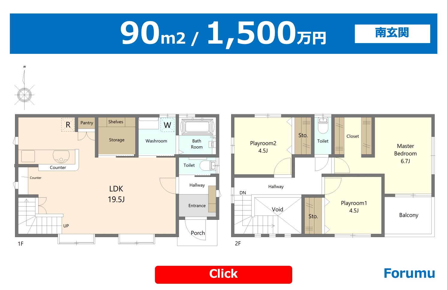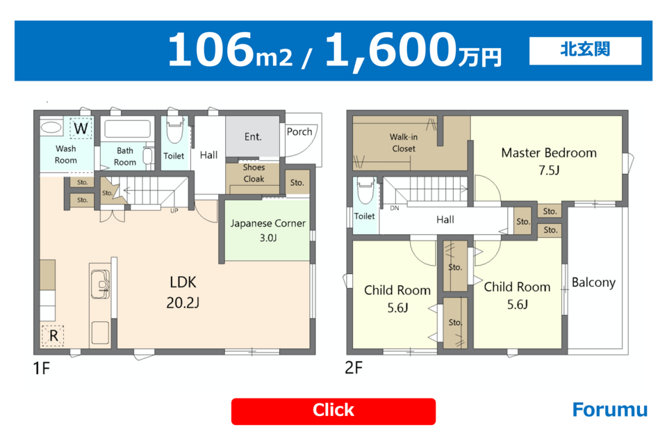 106.04m2 / 4LDK+S+小屋裏収納 / 2,050万円