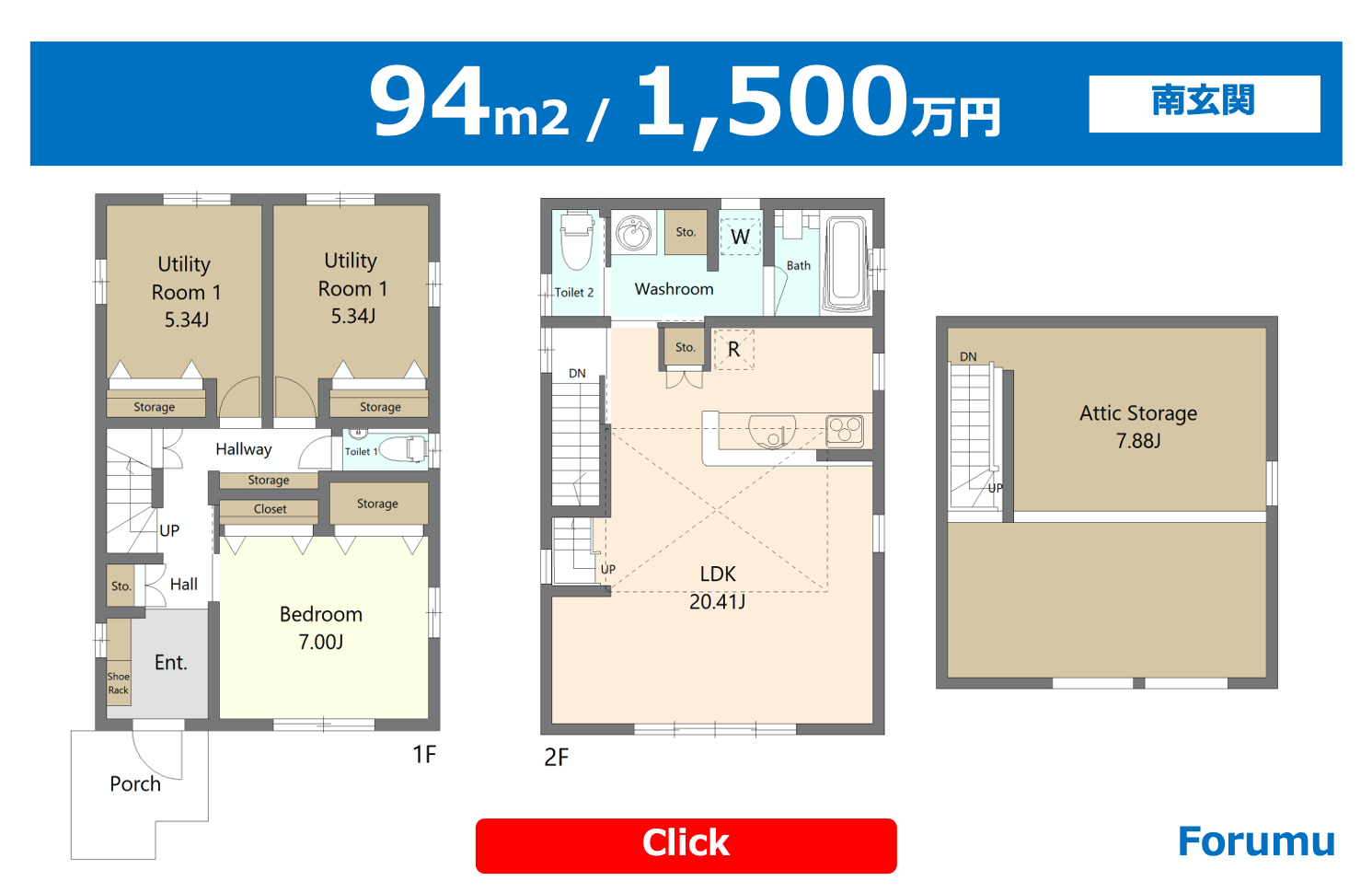 101.86m2 / 3LDK+小屋裏部屋 / 2,050万円